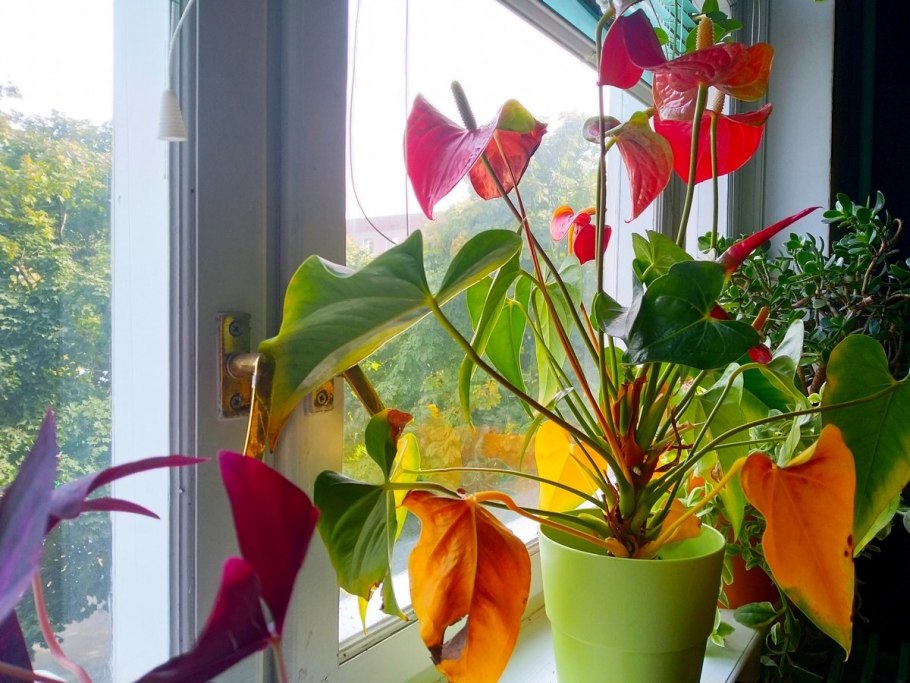 Антуриум почему красные цветки позеленели