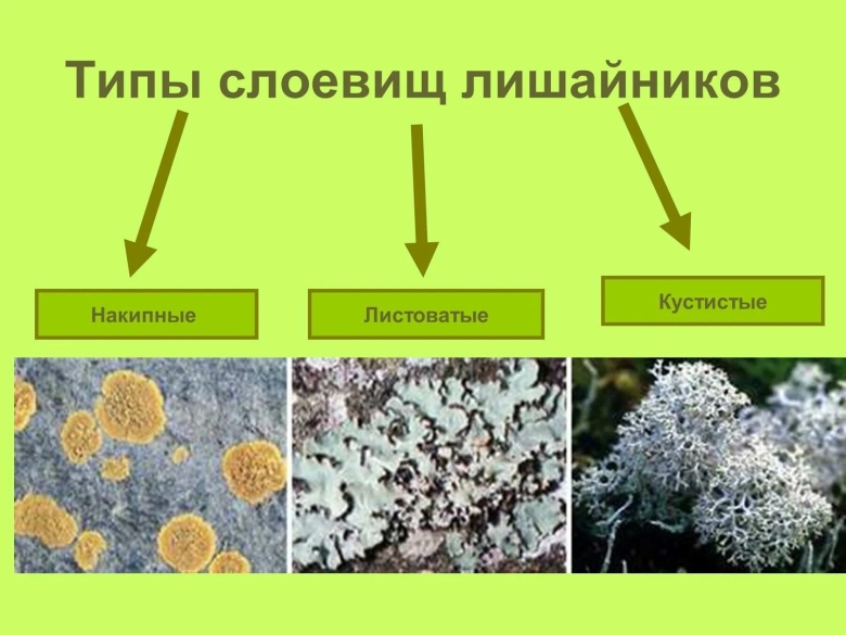 Лишайники накипные листоватые кустистые