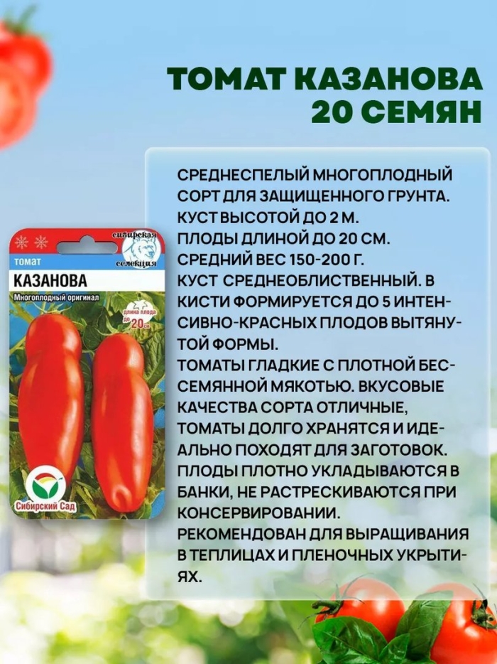 Томат казанова Томат казанова сибирский садТомат казанова 20 штСемена сибирский сад томатСорт томатов казановаКазанова помидоры Поделиться фото в социальных сетях: Категории: Овощи Добавлено: 14 май Просмотров: 423 голосов: 0 0 0 Комментариев (0) Введите код с картинки: Добавить комментарий Похожие фото: Томат жиголо Томат фляшен Томаты черри Томат ампельный тигровый Томат вишня красная Томат вишенка черная Томаты на окне Томат дрова Томат помидор Томаты в собственном соку на зиму Томат ред робин Томат розовый фламинго