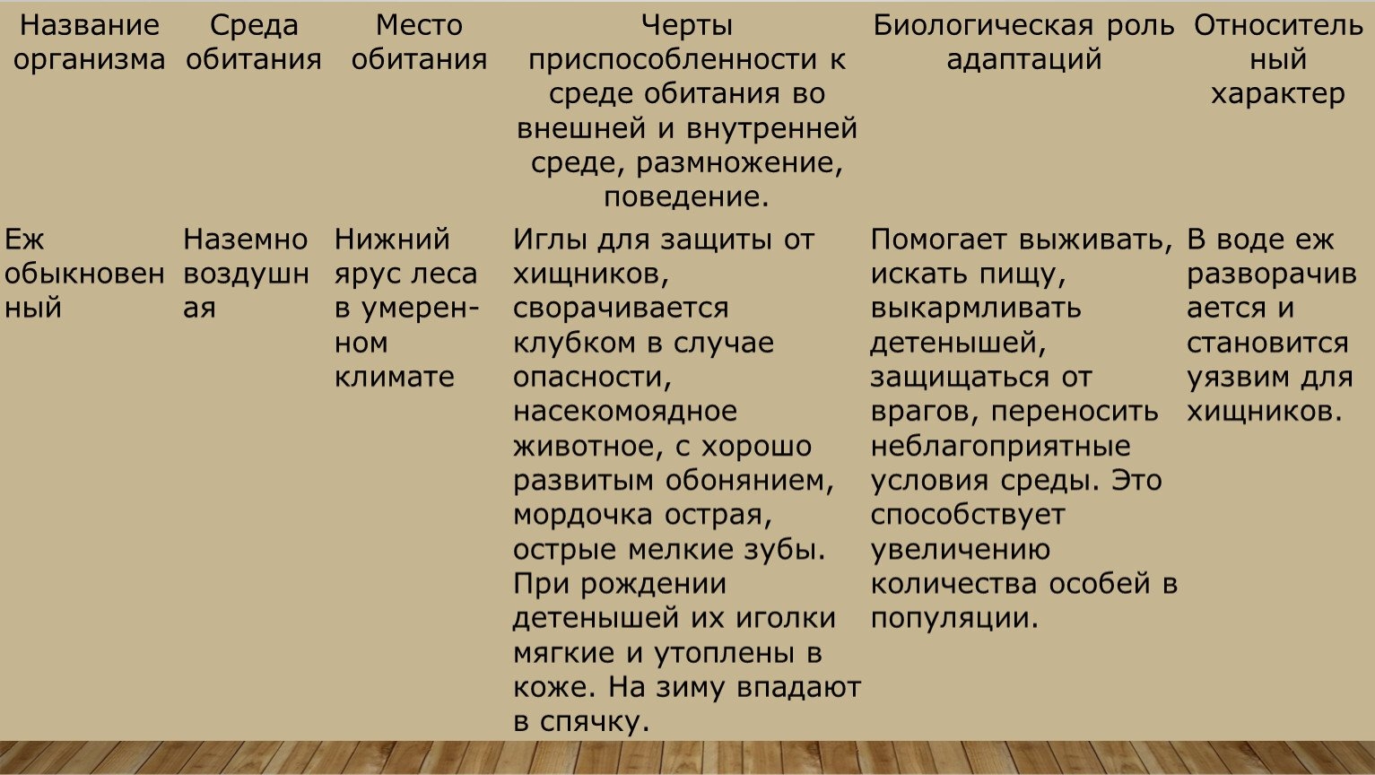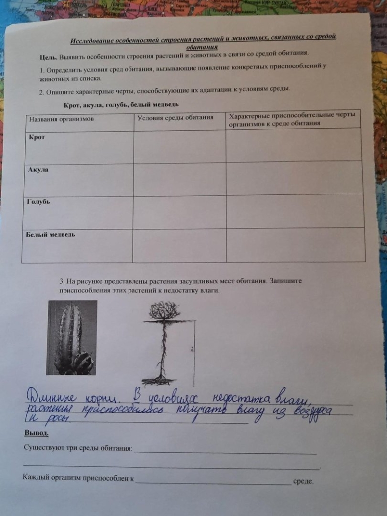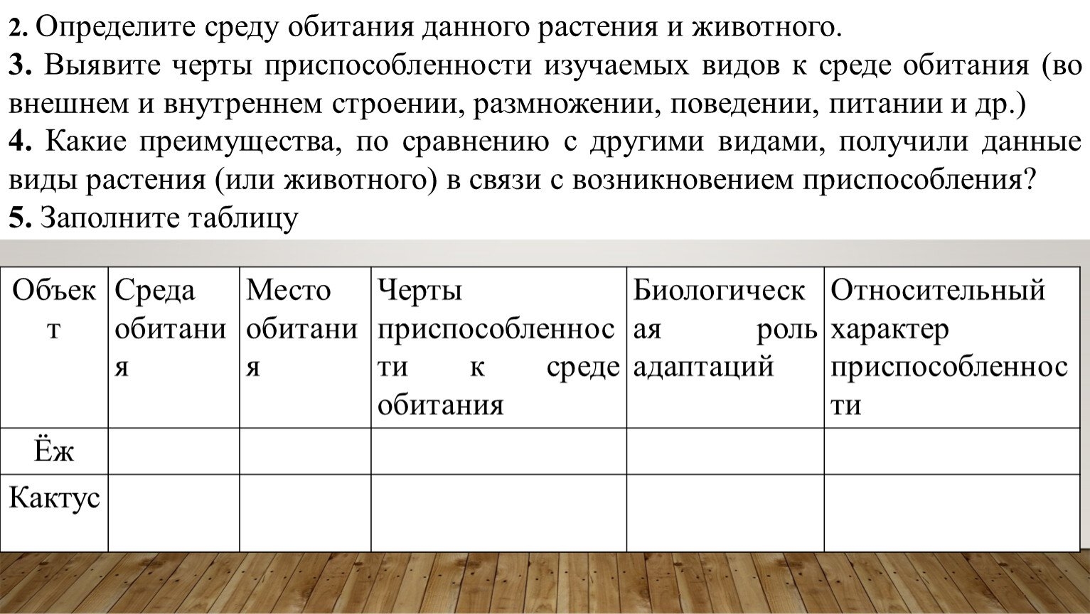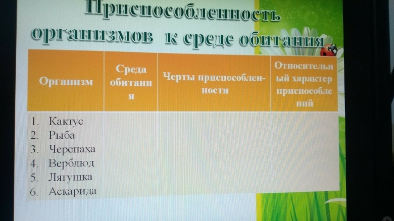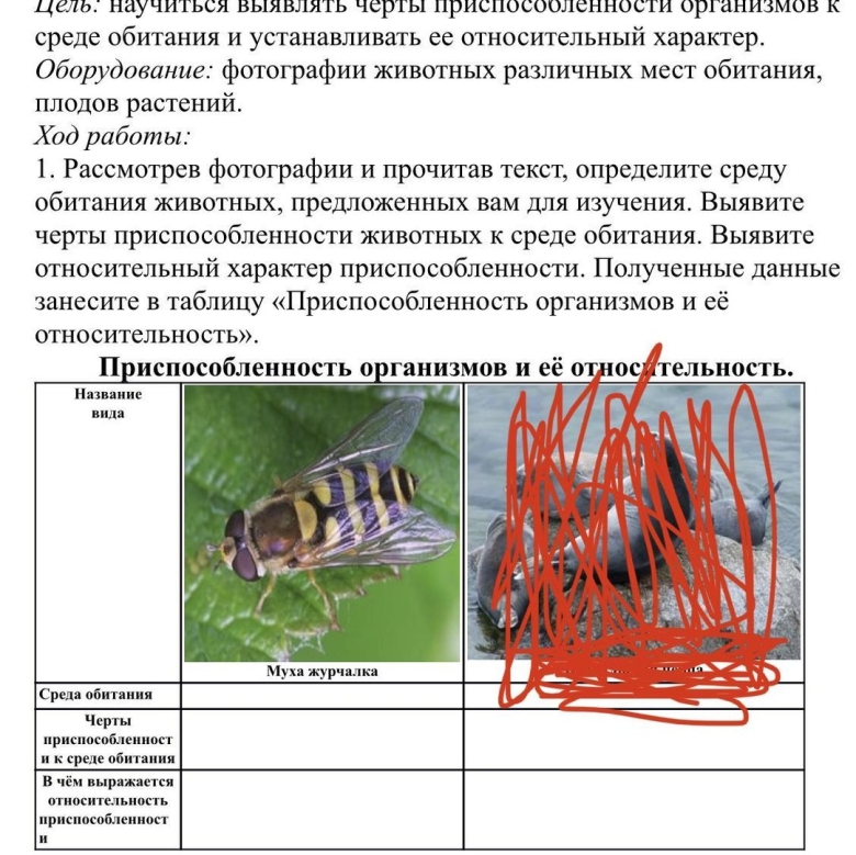Изучение приспособление организмов к среде обитания таблица