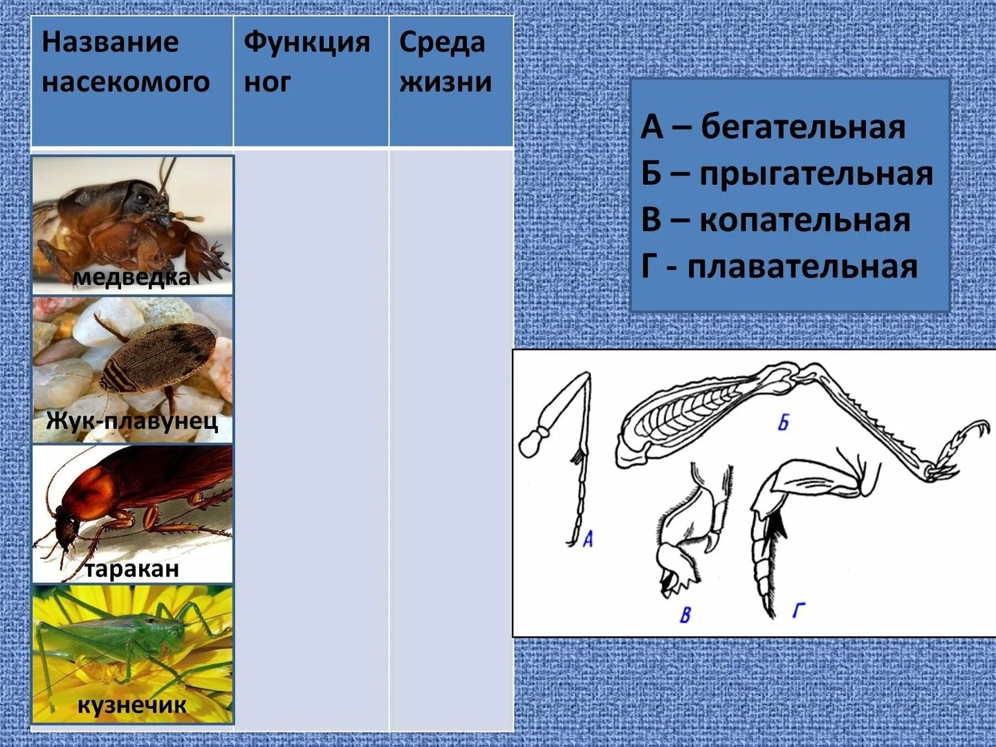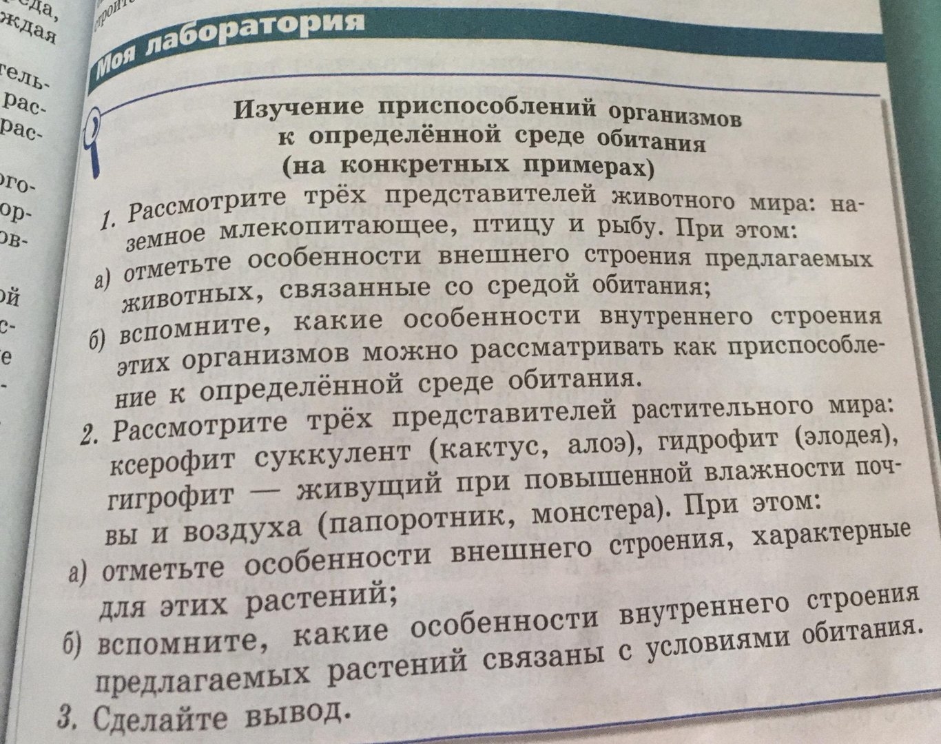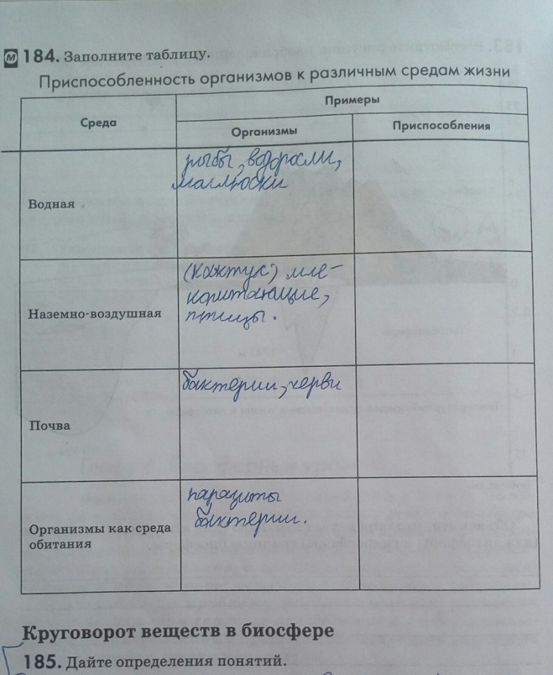 Изучение приспособление организмов к среде обитания таблица