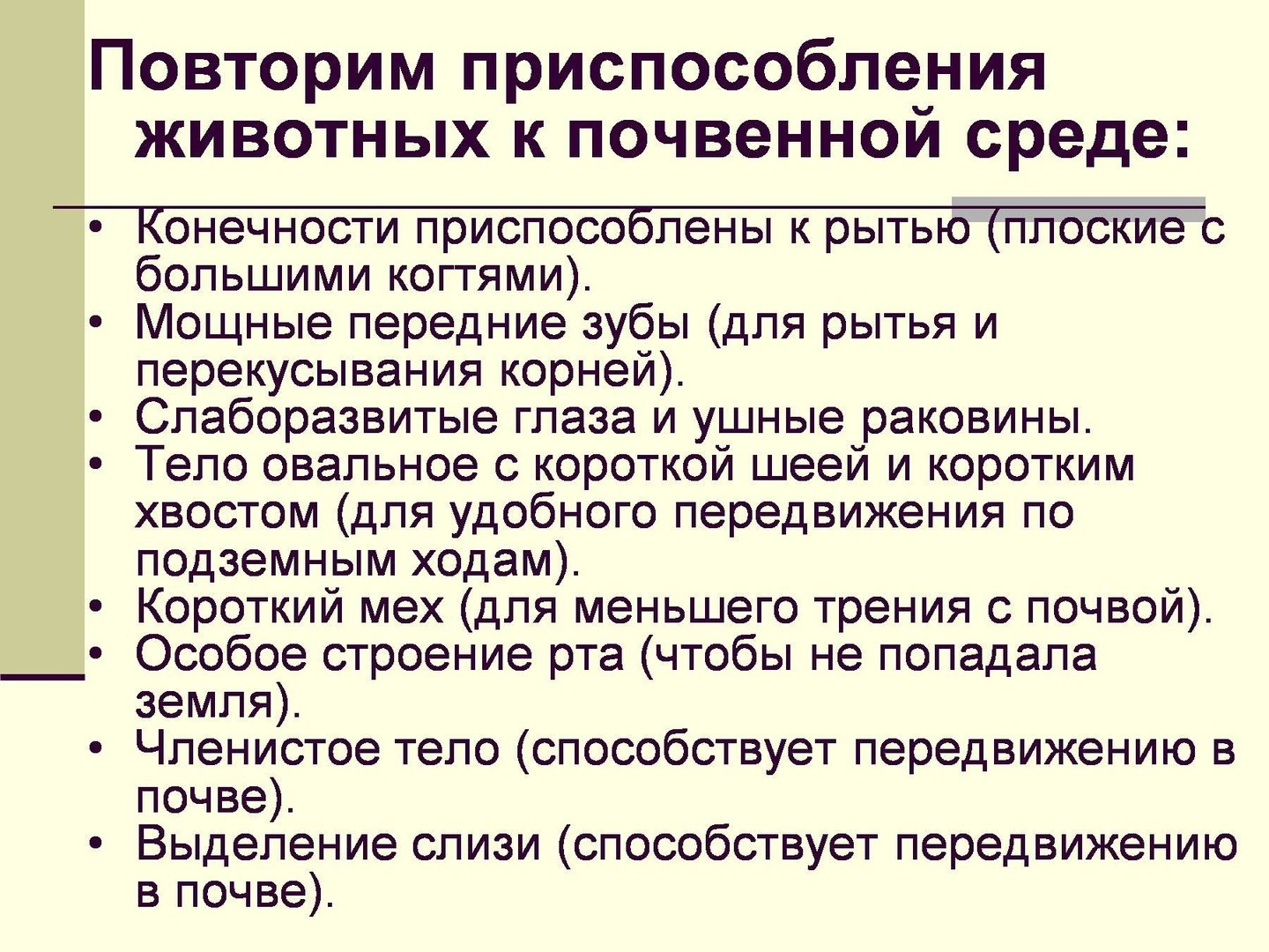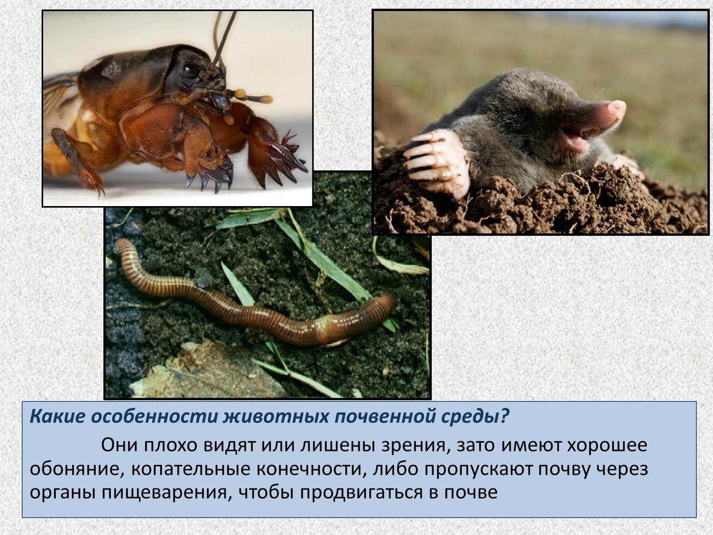 Повторим приспособления животных к почвенной среде