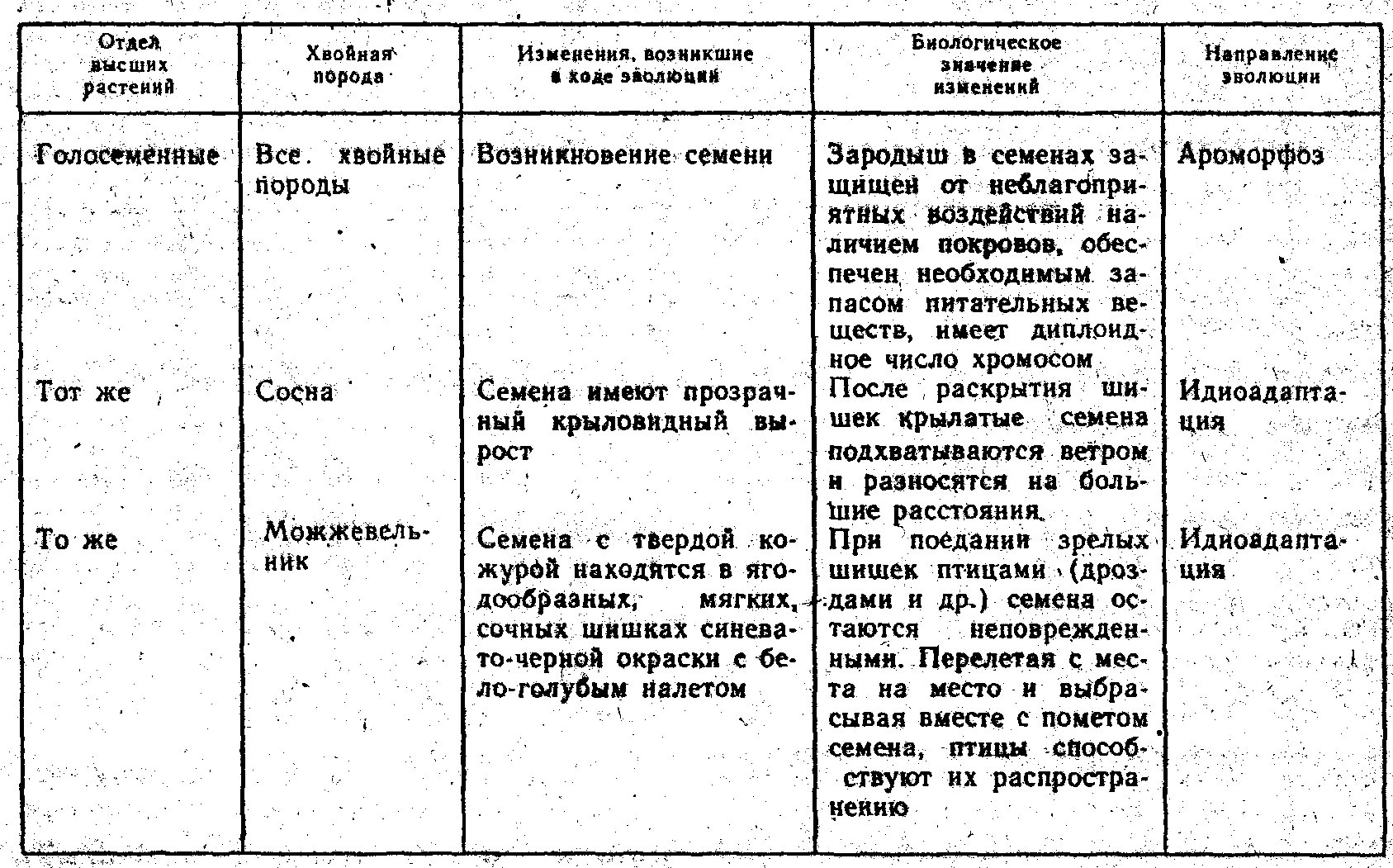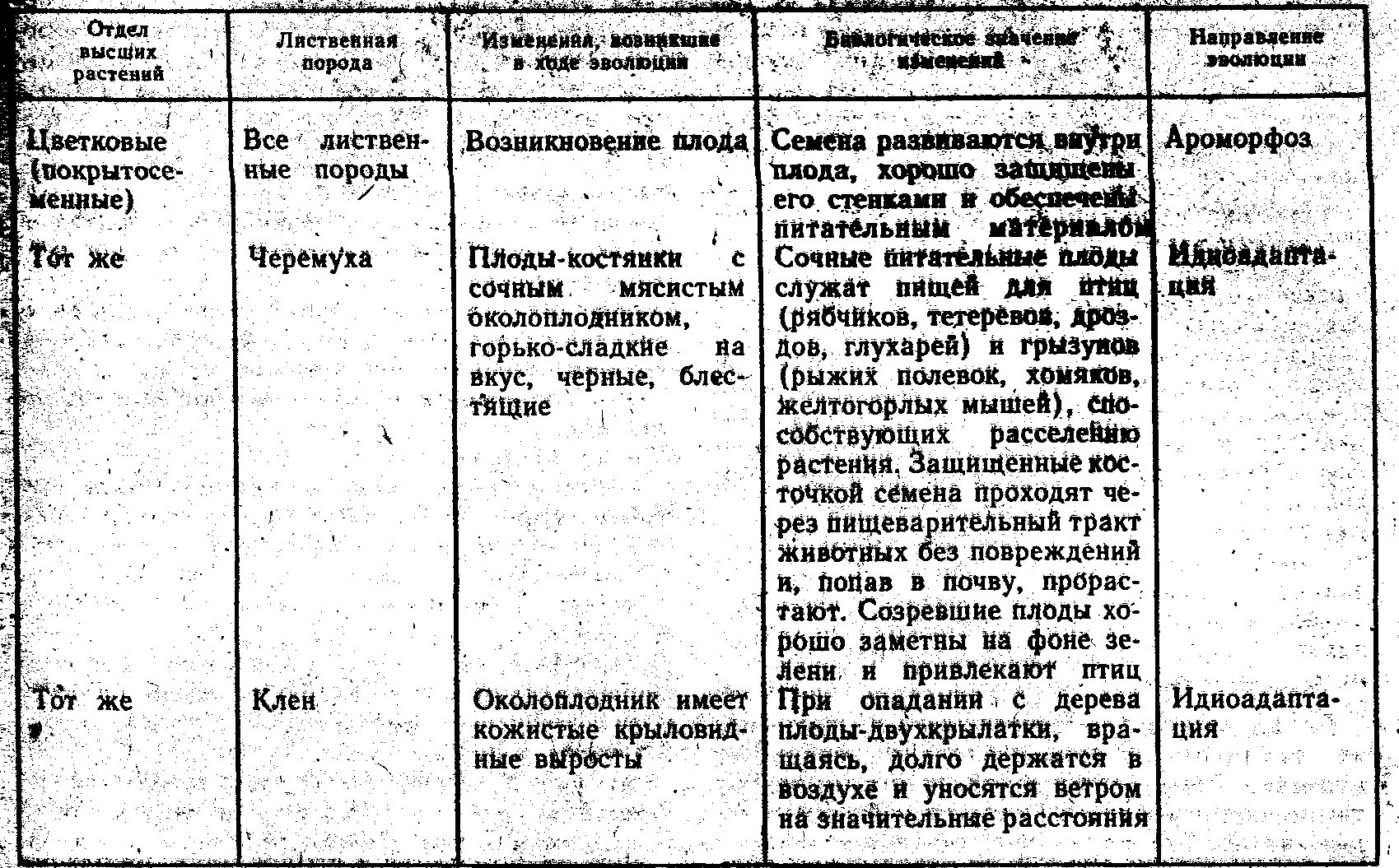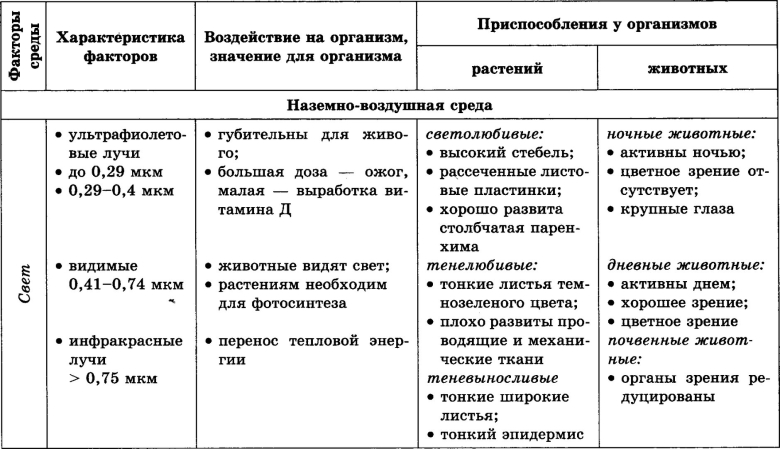 Таблица адаптации растений к абиотическим факторам среды