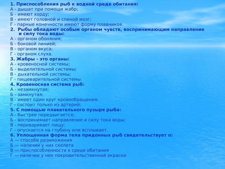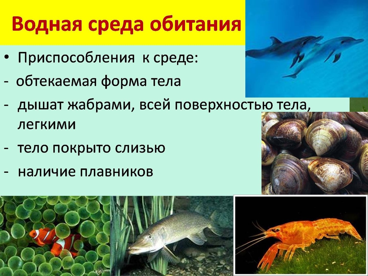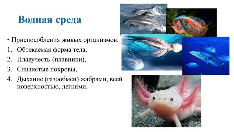 Приспособленность организмов к водной среде