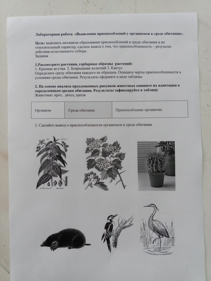 Лабораторная работа по биологии приспособленность
