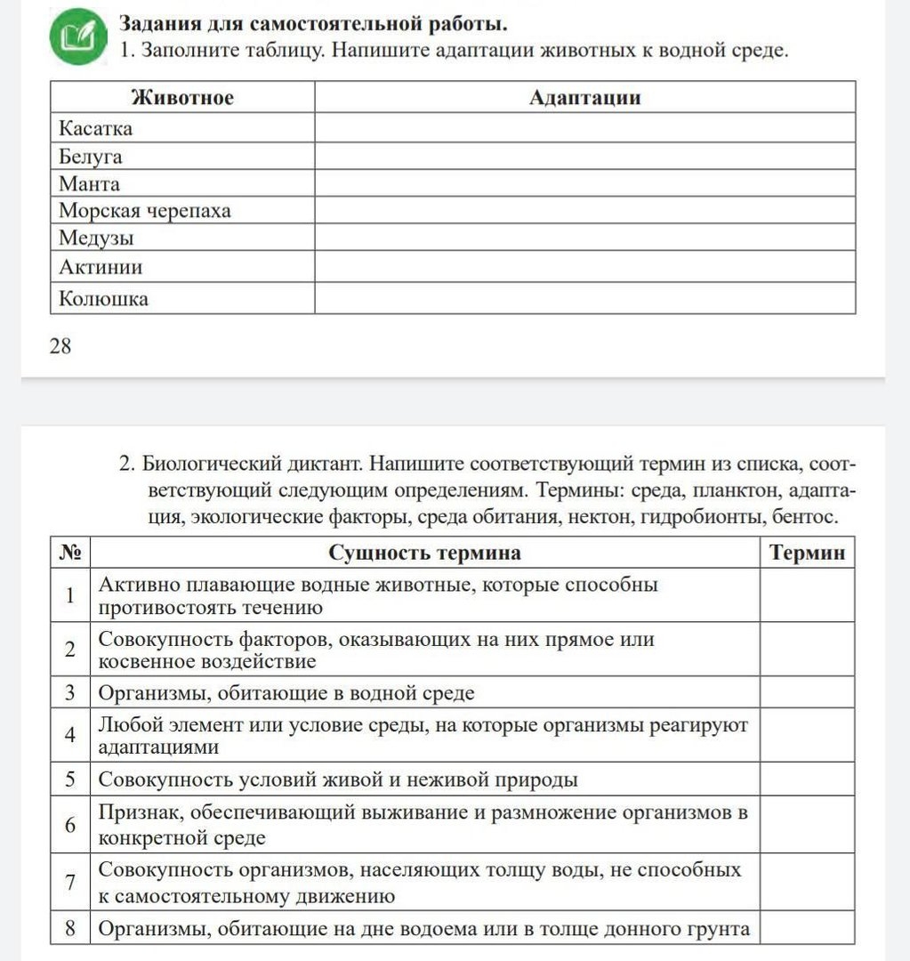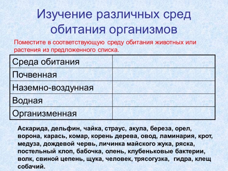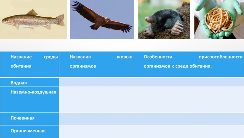 Биология таблица среды обитания живых организмов