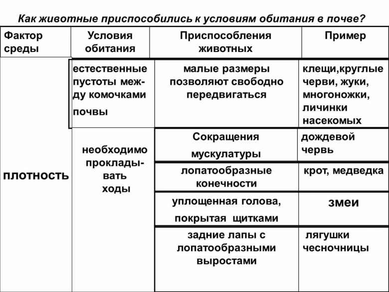 Приспособление животных к почвенной среде обитания