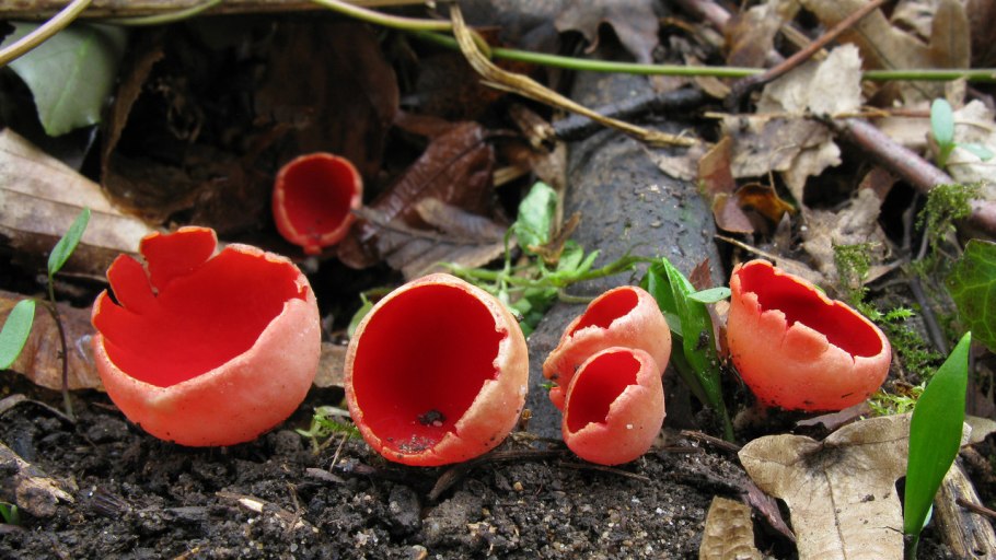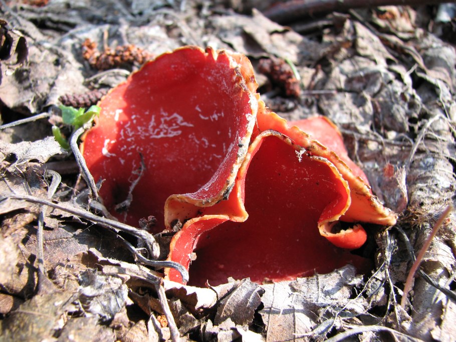 Весенние грибы саркосцифа алая