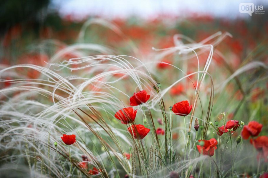 Степь ковыль и маки