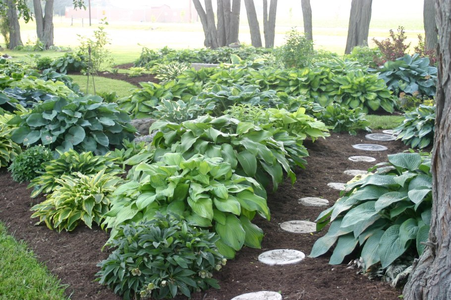 Клумба из хост в полутени