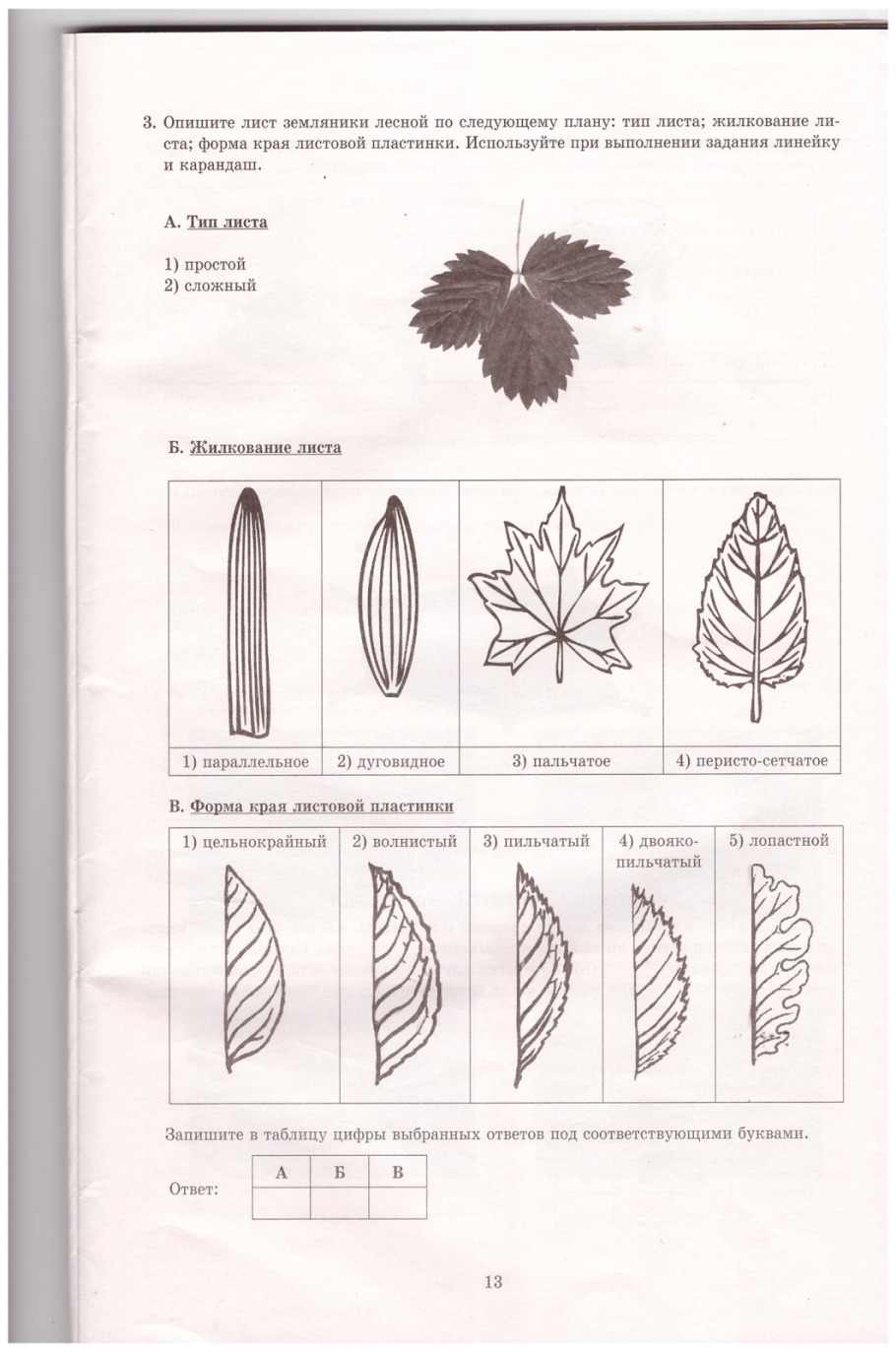 Форма листа биология 6 класс