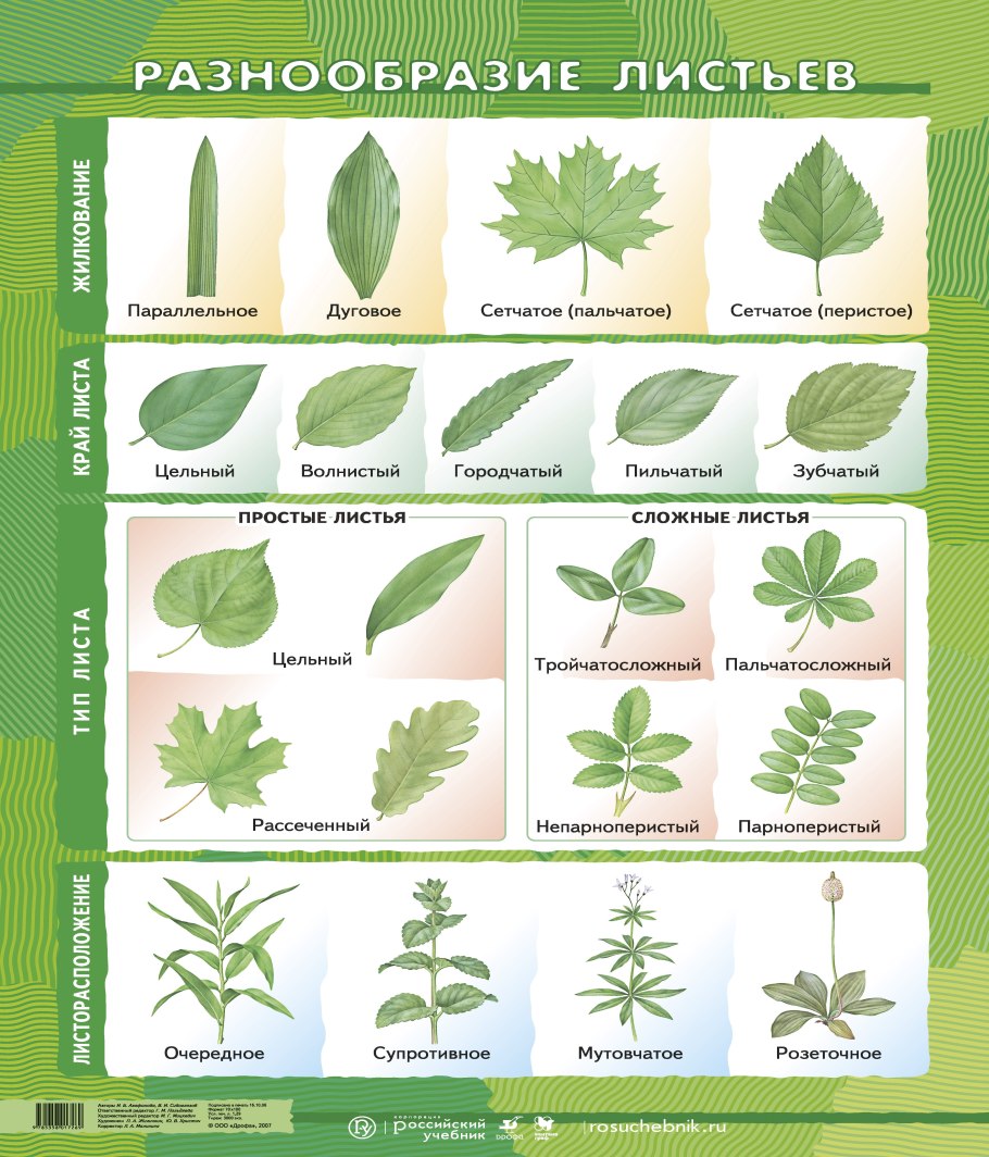 Простые и сложные листья жилкование листа