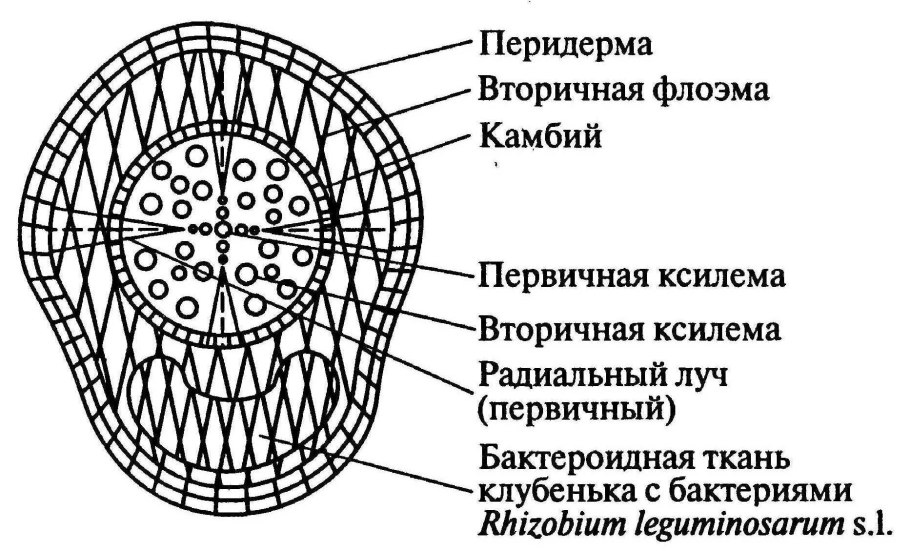 Поперечный срез клубенька бобовых