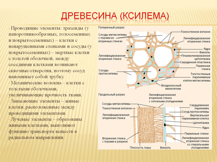 Строение ткани растений Ксилема