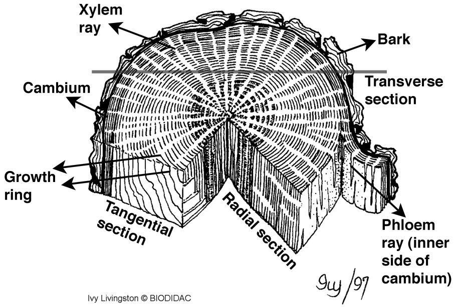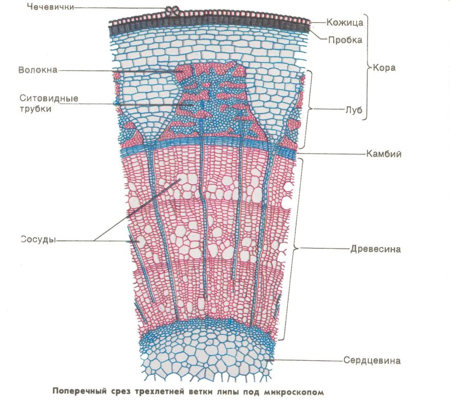 Поперечный срез стебля древесного растения строение
