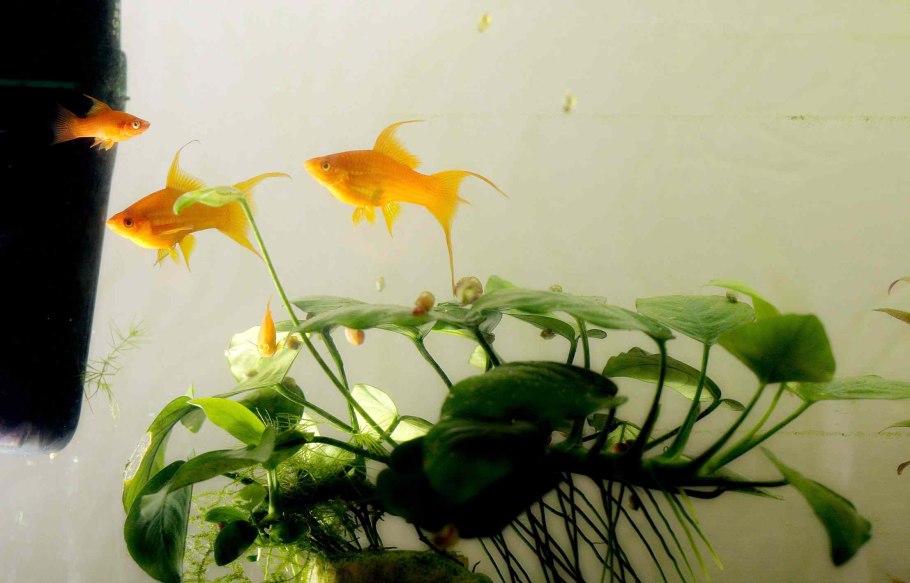 Анубиас и золотые рыбки