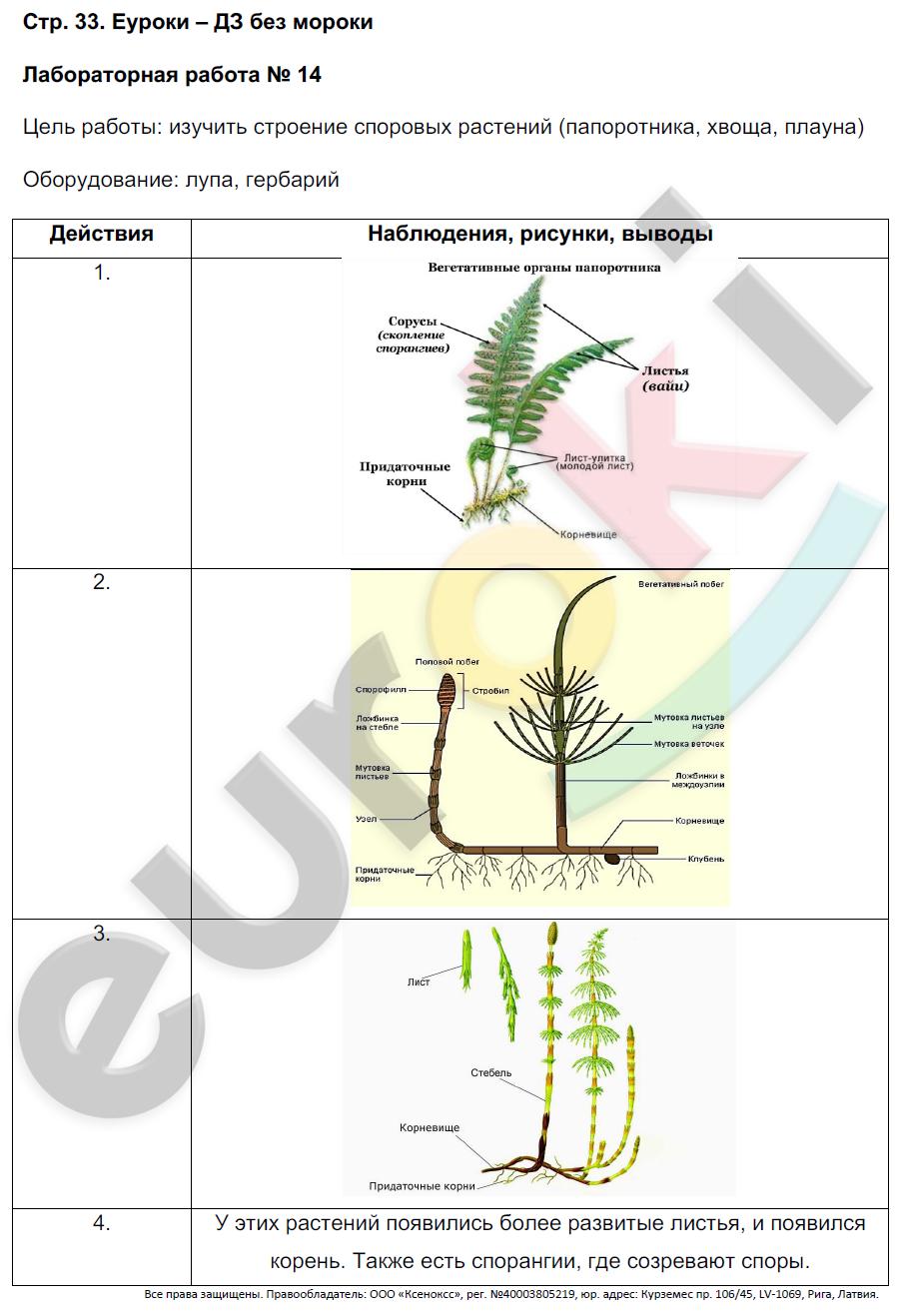 Высшие растения споровые и семенные таблица