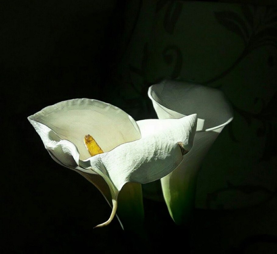 Белые лилии на черном фоне