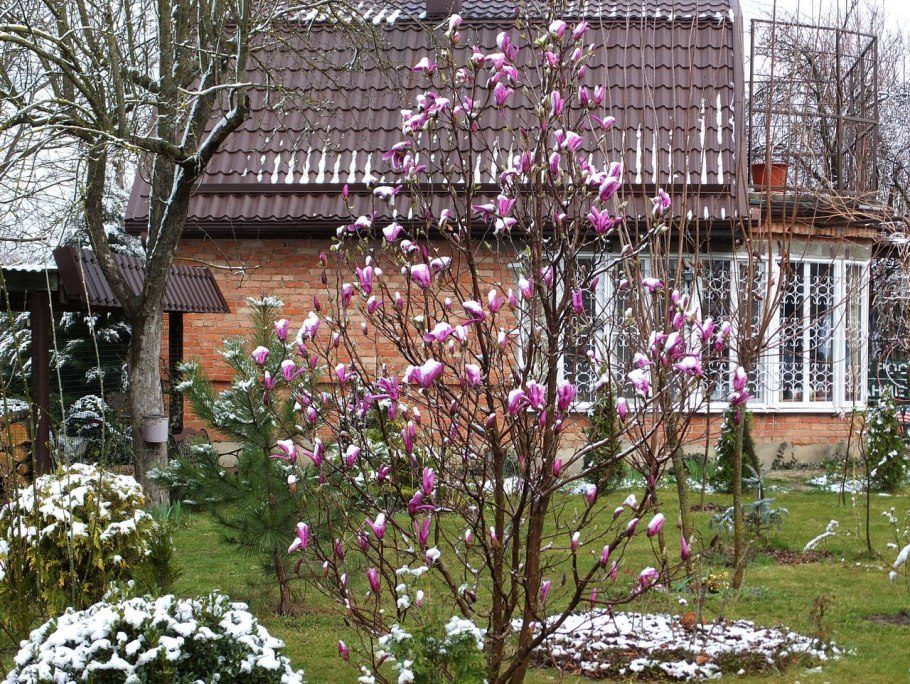 Магнолия ив саду в сибири