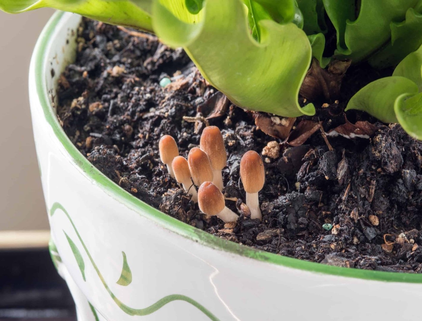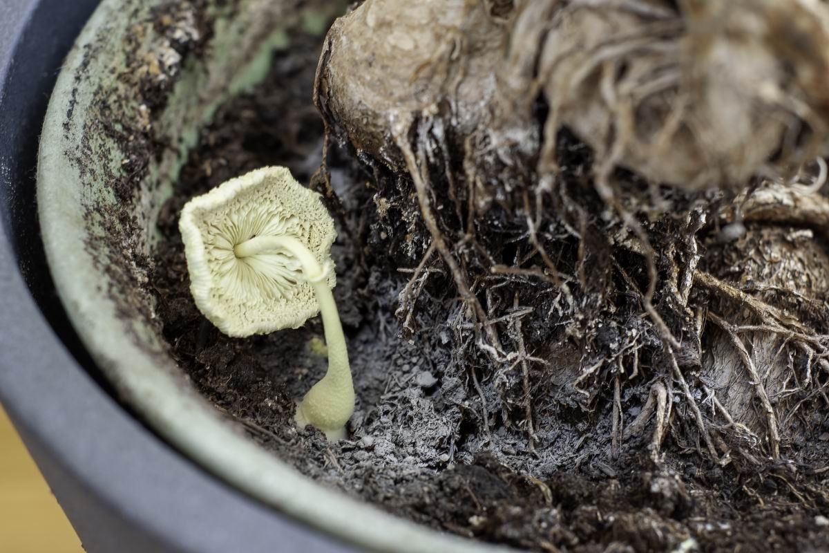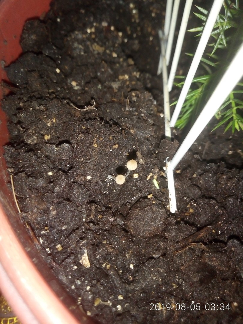 Грибы в цветочном горшке