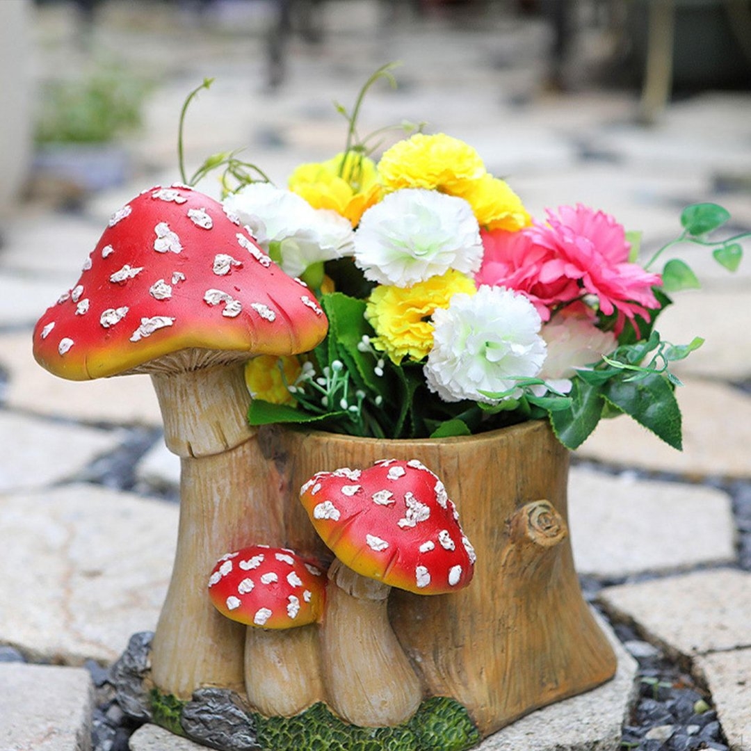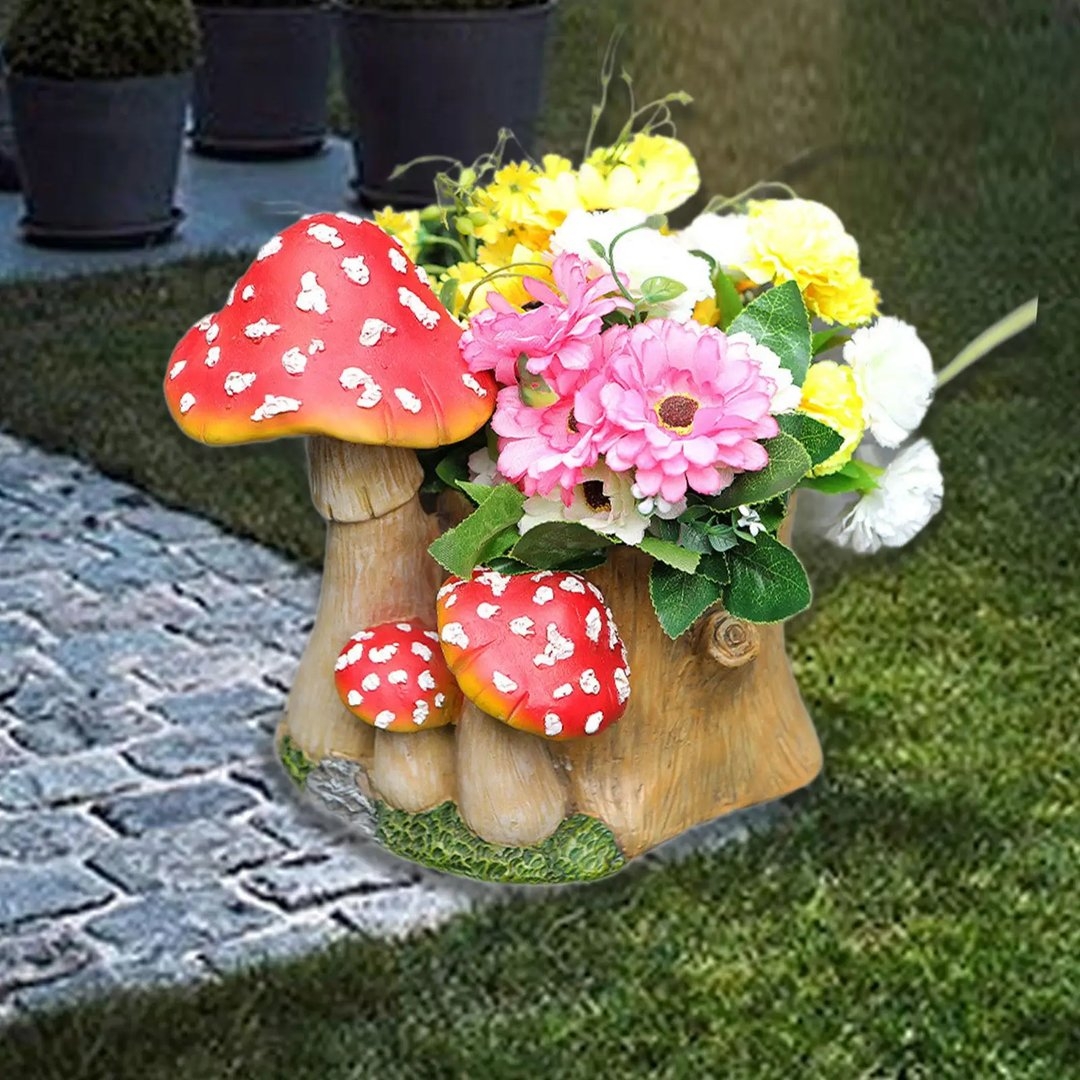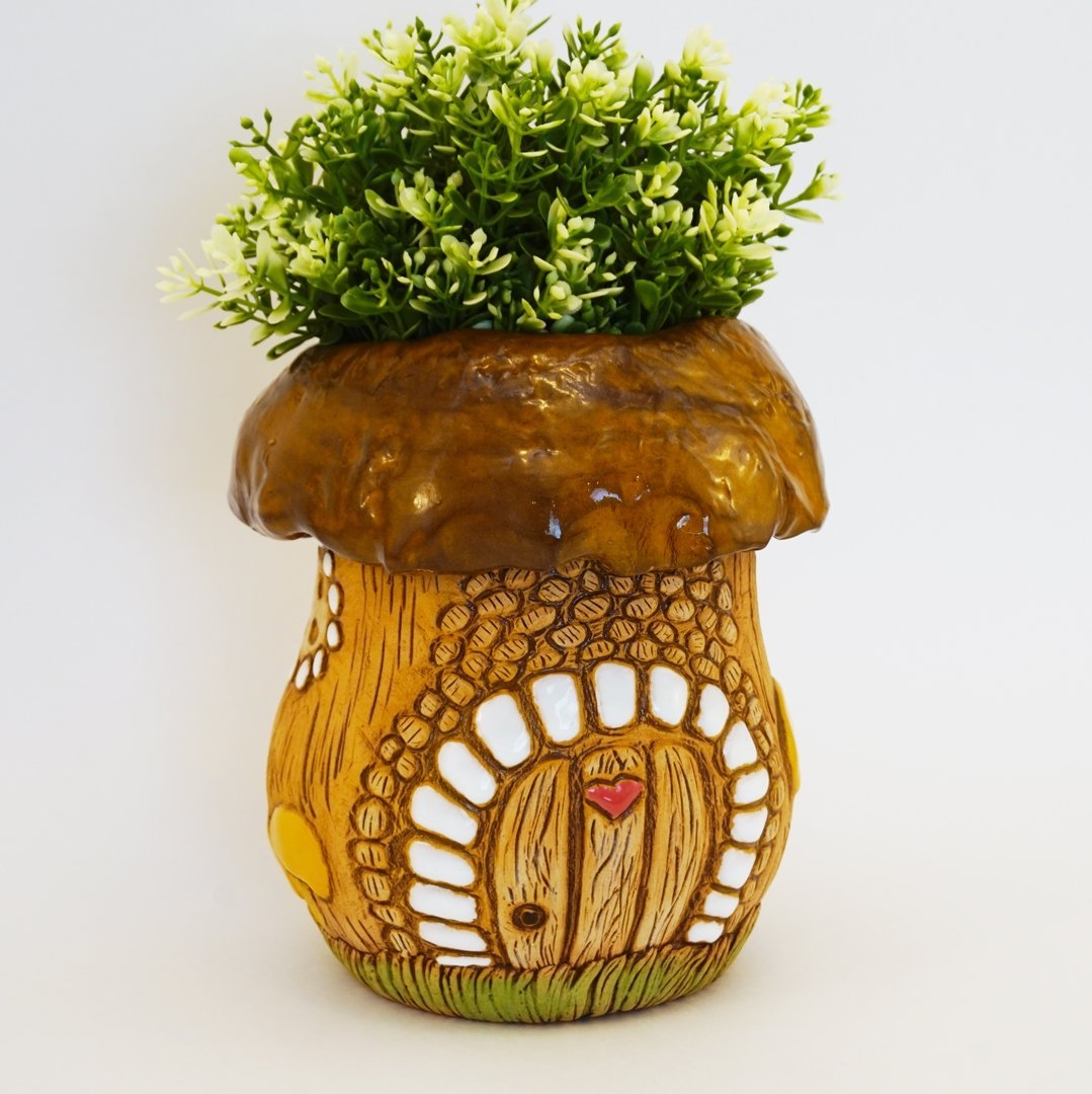 Кашпо пенек с грибами
