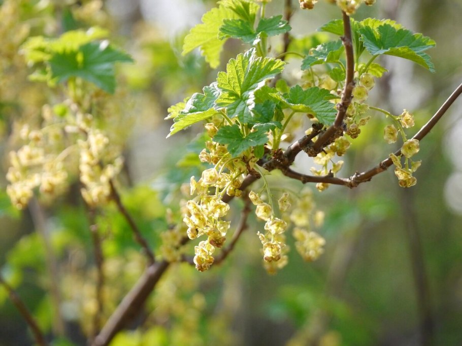 Красная смородина цветет