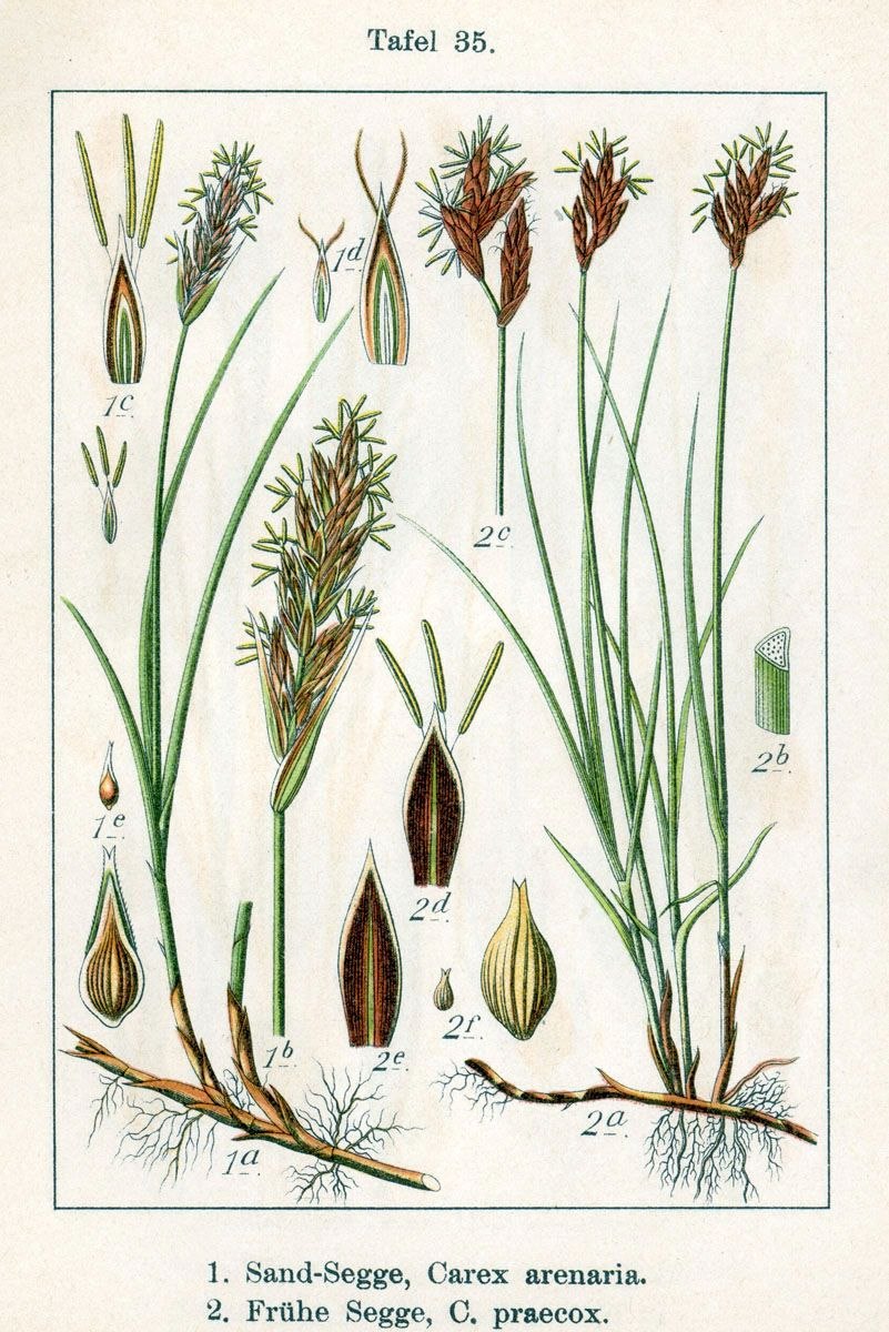 Осока Болотная Ботаническая иллюстрация