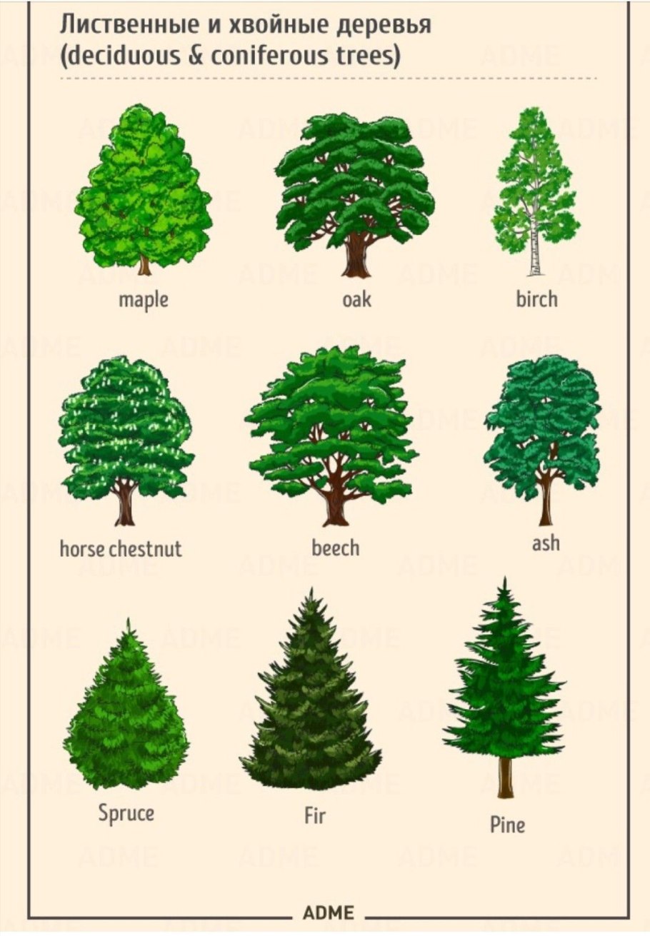 Таблица хвойные и лиственные деревья