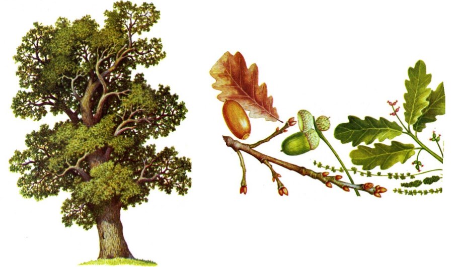 Дуб черешчатый лист плод