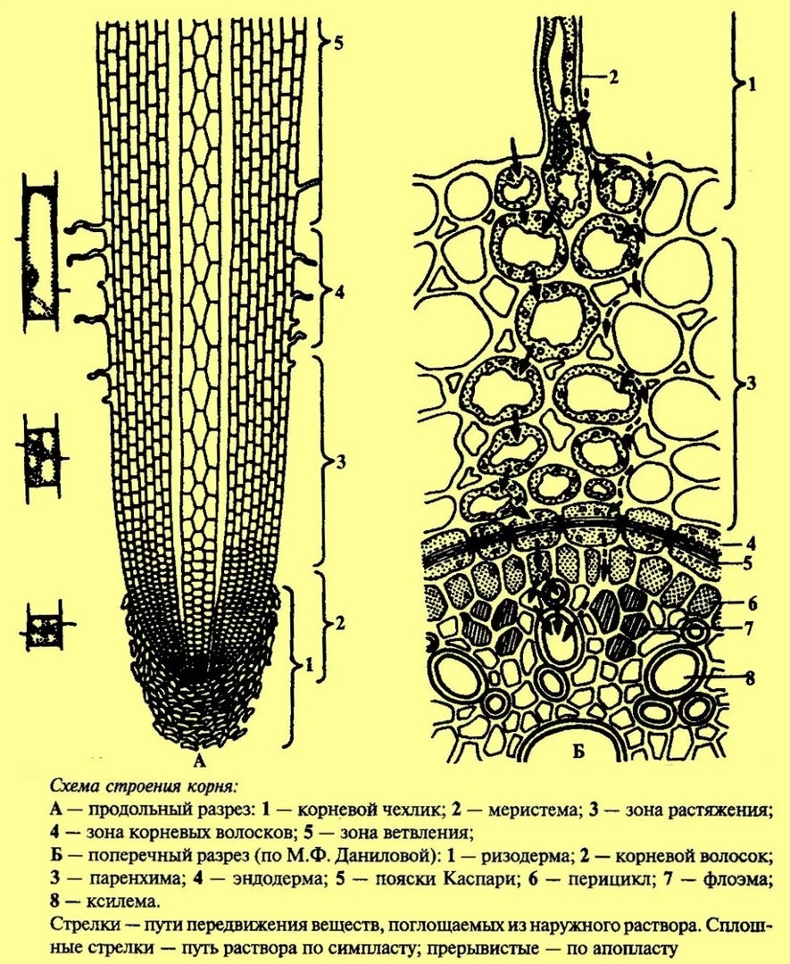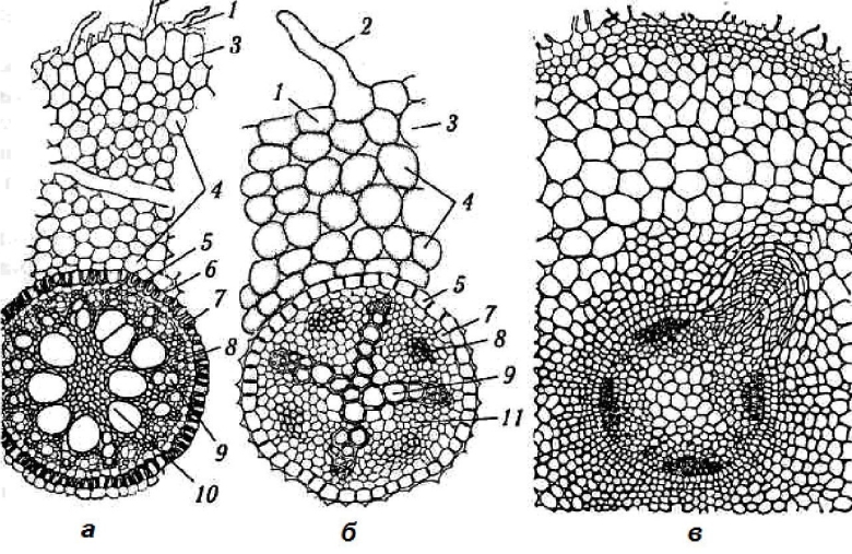 Строение корня растения поперечный срез