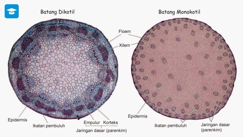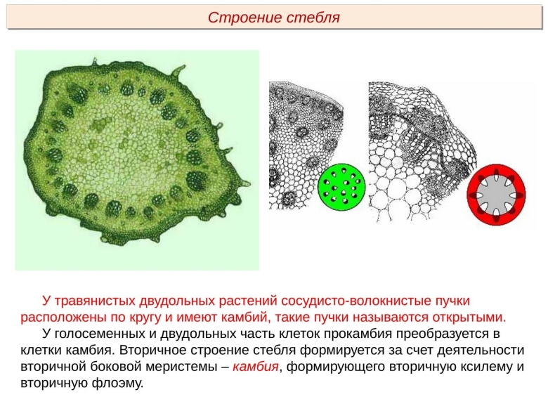 Анатомическое строение стебля однодольных и двудольных растений