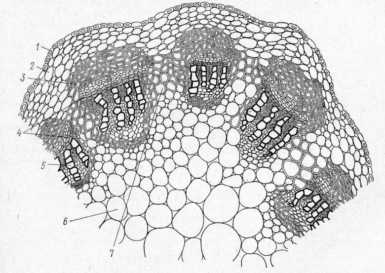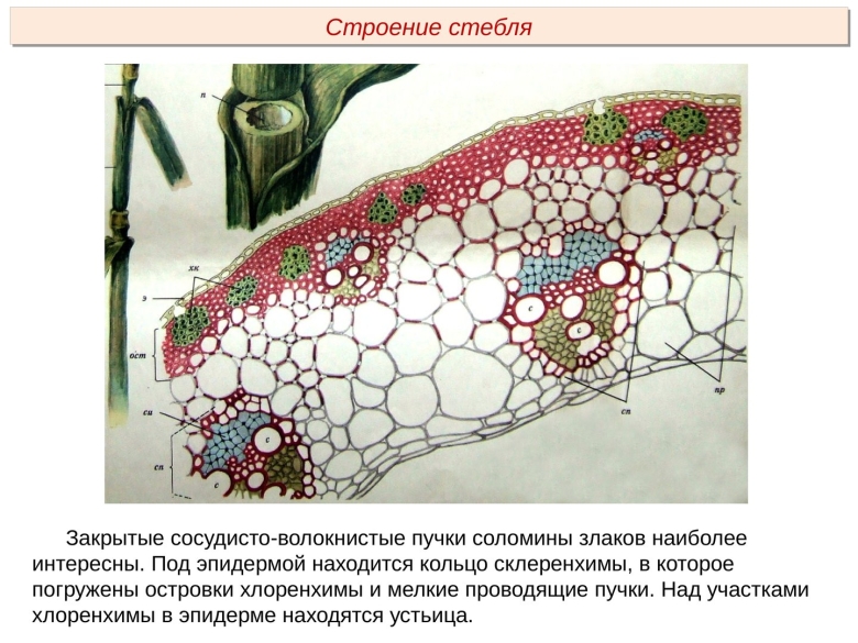 Внутреннее строение стебля однодольных растений