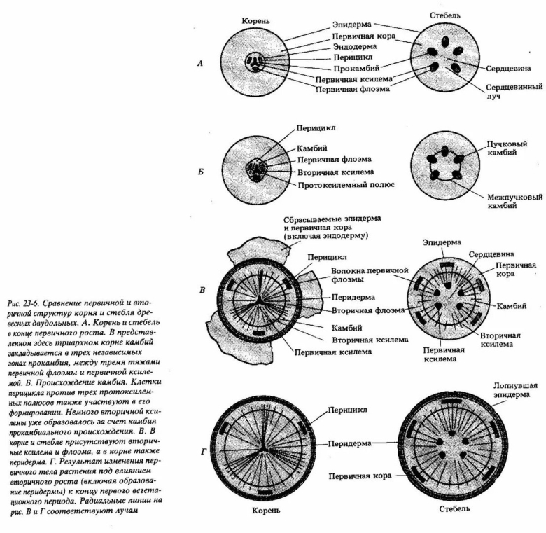 Строение стебля однодольных и двудольных растений