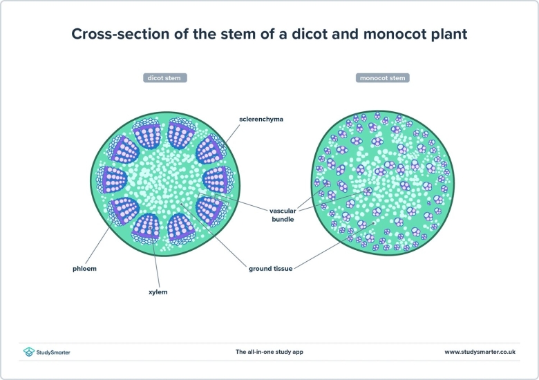 Срез однодольного и двудольного растения