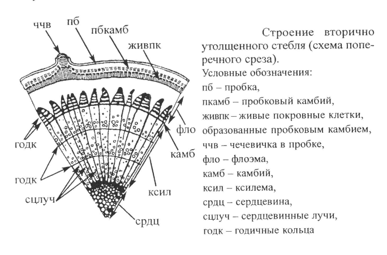 Строение стебля дерева на поперечном срезе