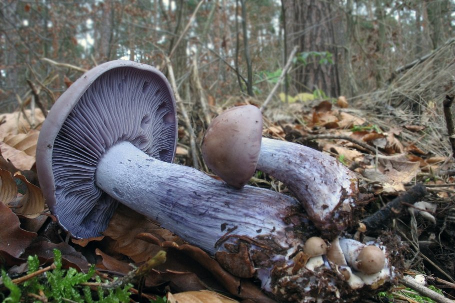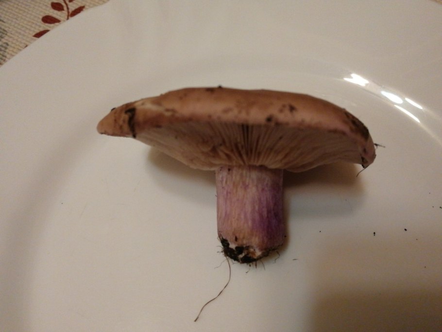 Рядовка с фиолетовой шляпкой и толстой ножкой