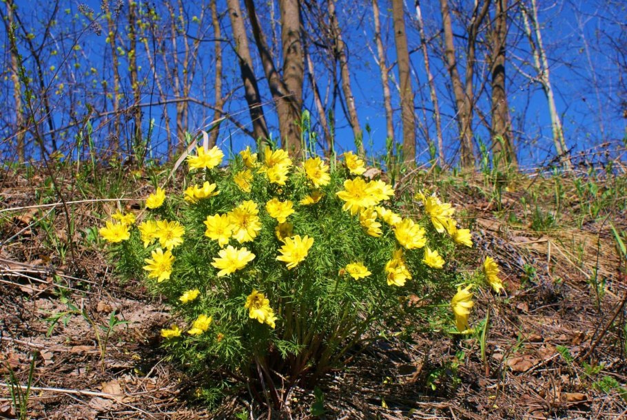 Адонис весенний в лесу