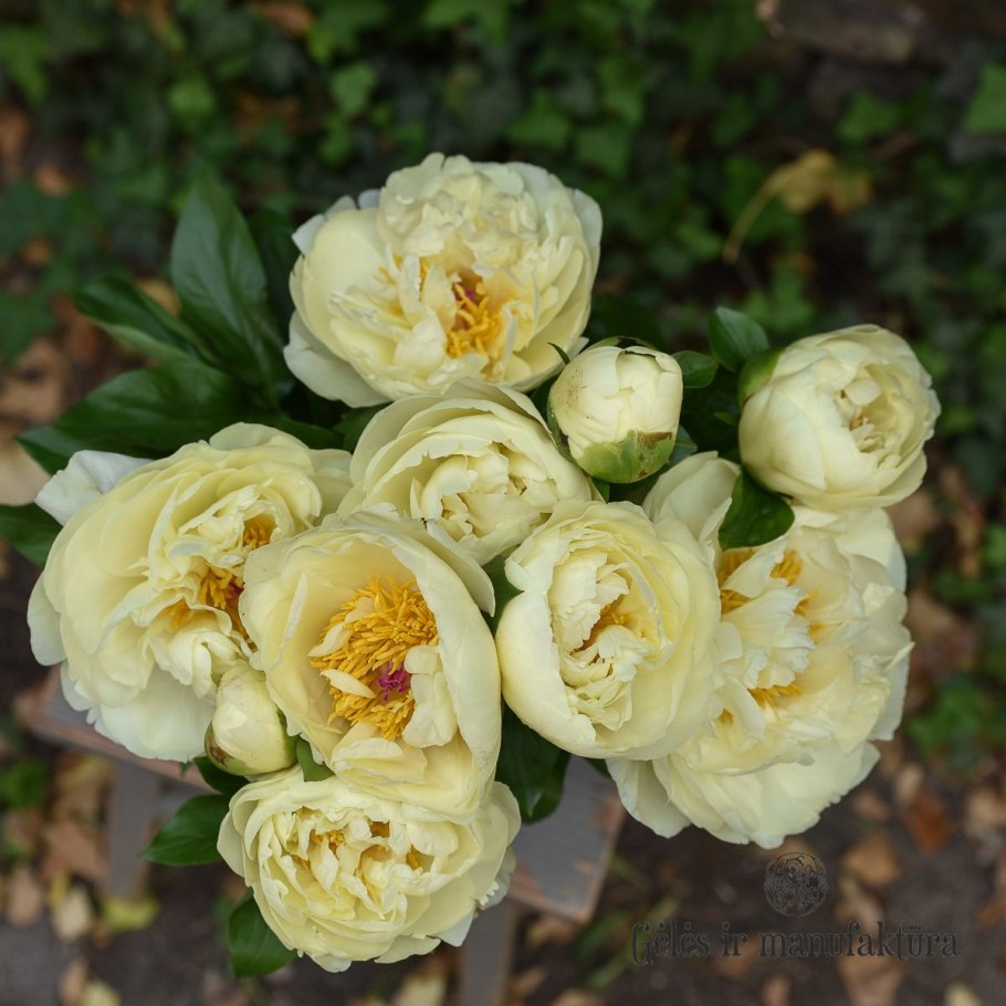 Нежно желтые пионы