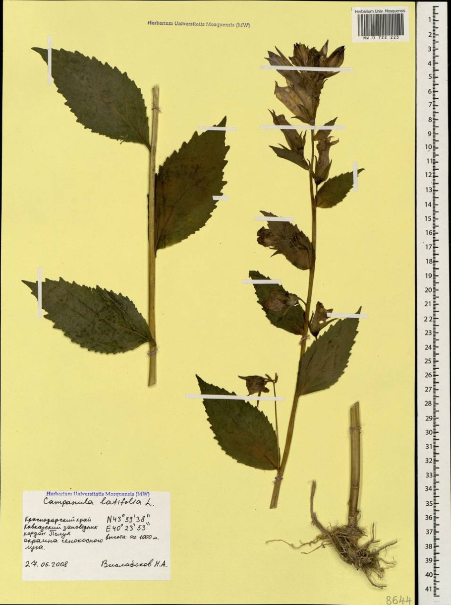 Колокольчик широколистный гербарий