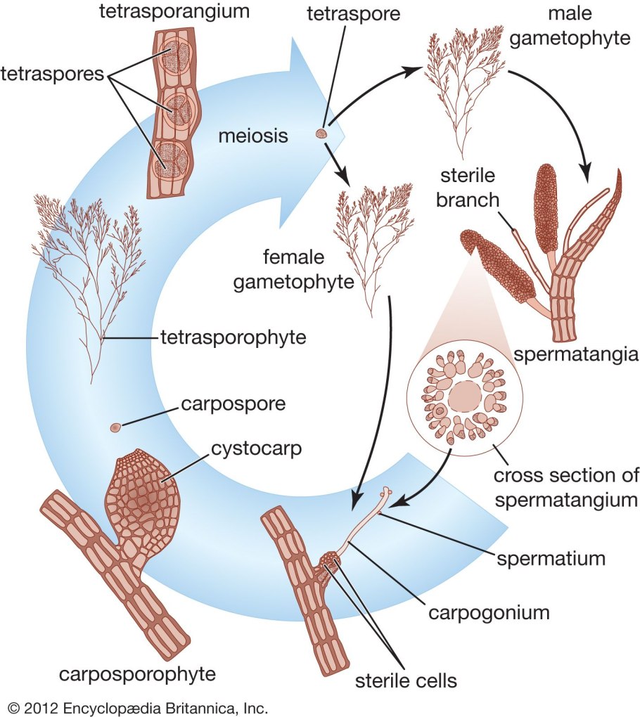 Цикл развития красных водорослей схема