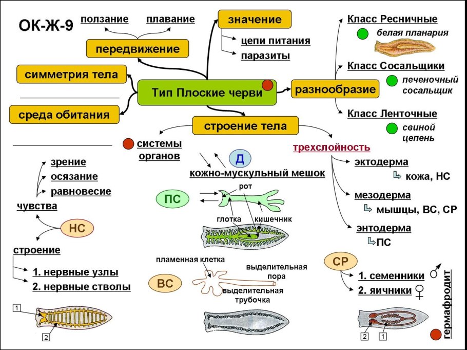Тип плоские черви опорные схемы