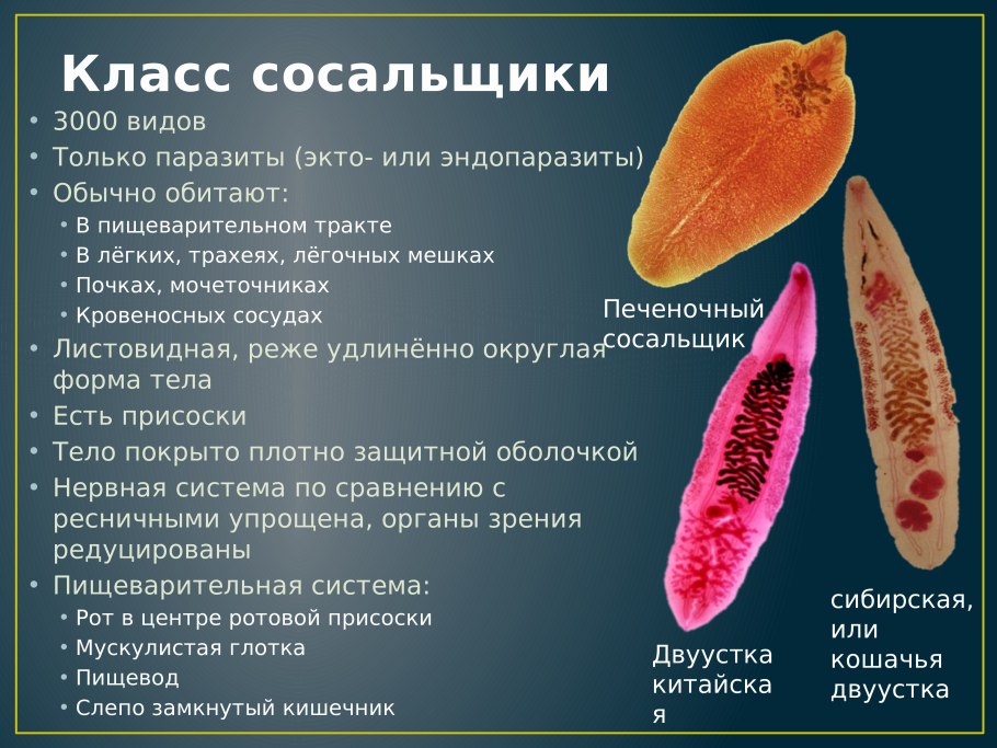 Класс сосальщики черви представители