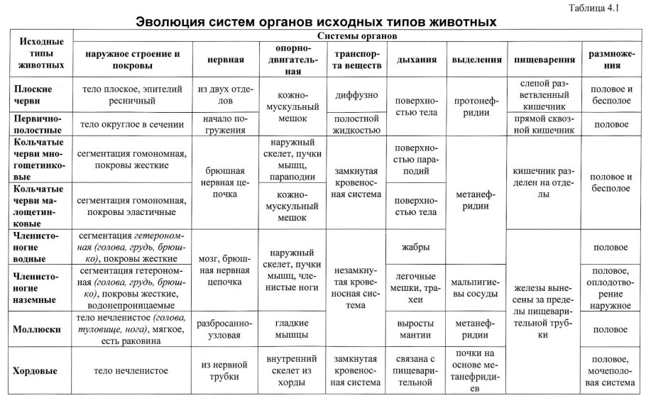 Эволюция нервной системы у животных таблица 7 класс