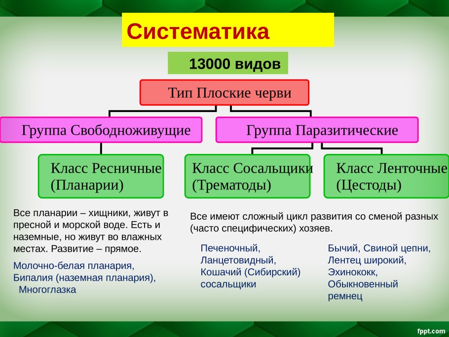 Классификация плоские черви биология 7 класс