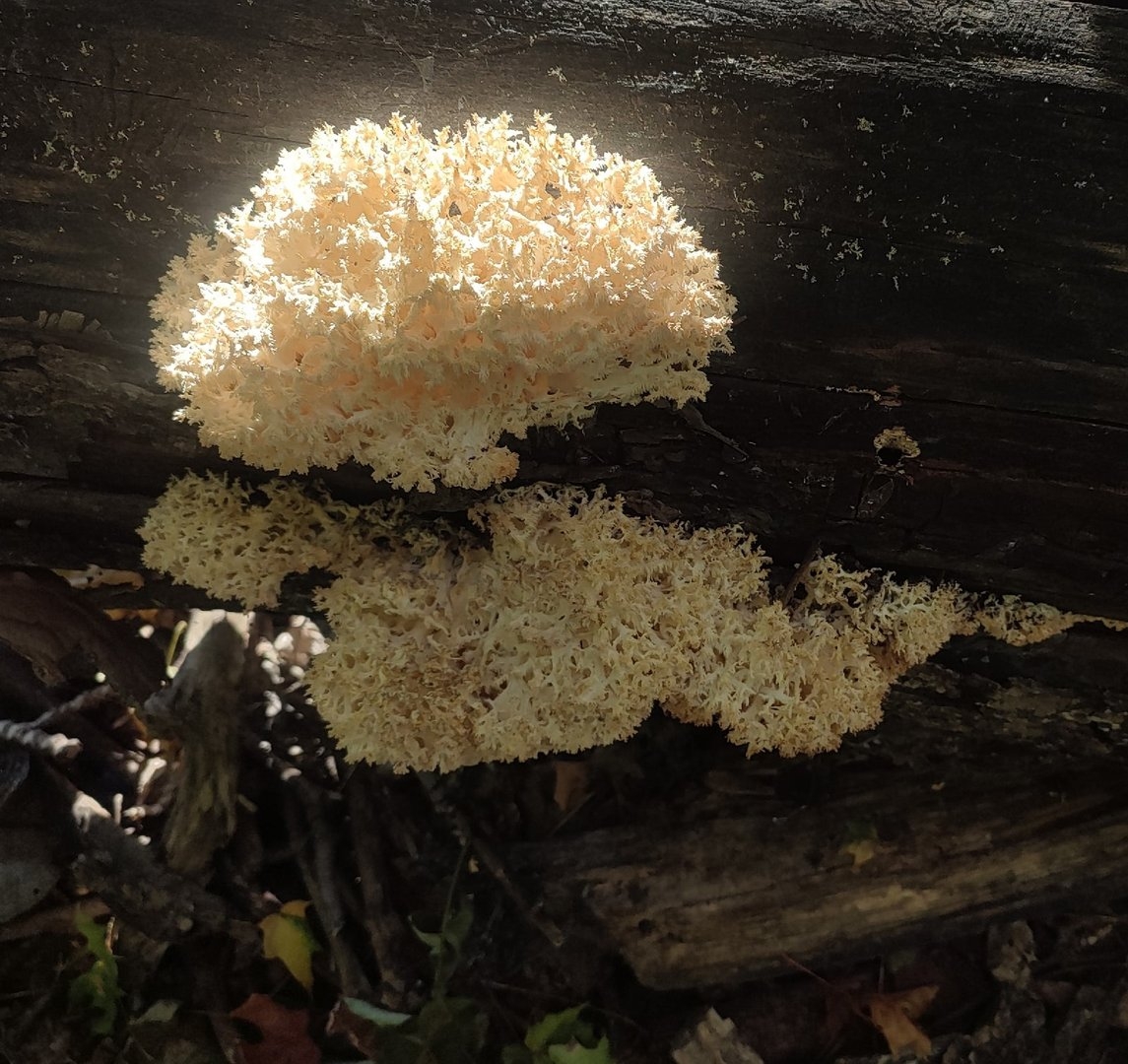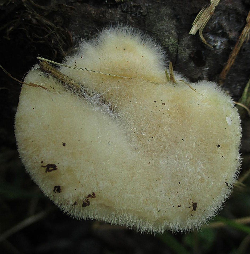 Мохнатый гриб белого цвета