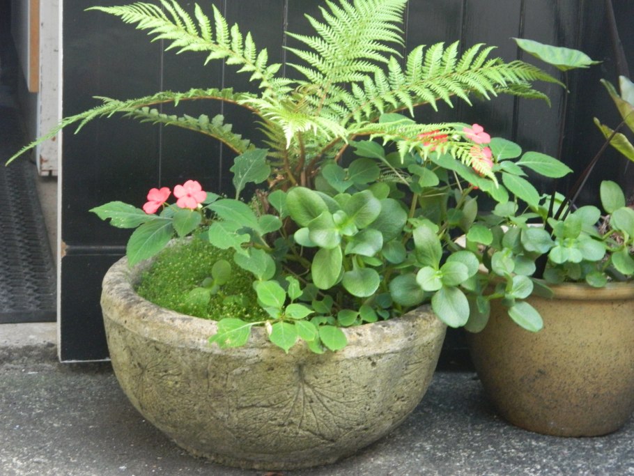 Папоротник в кашпо в саду