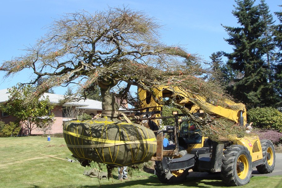 Пересадка больших деревьев в Японии