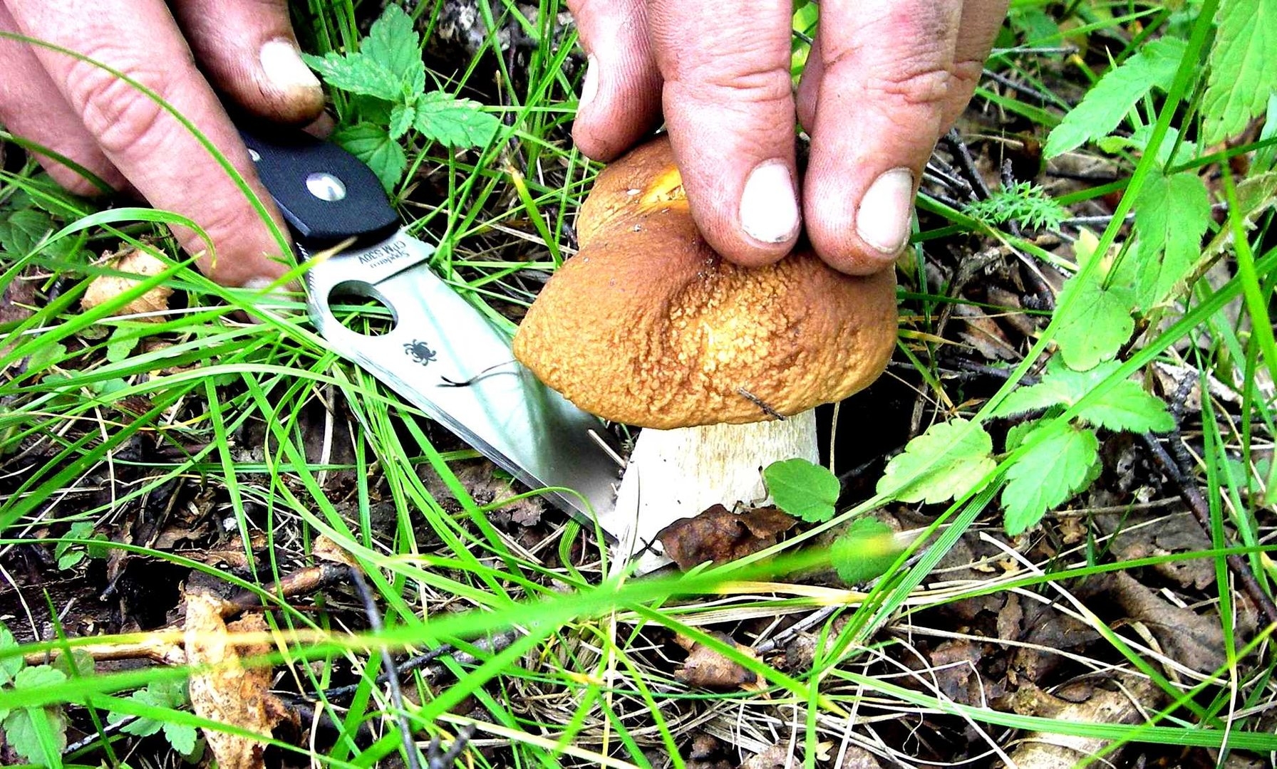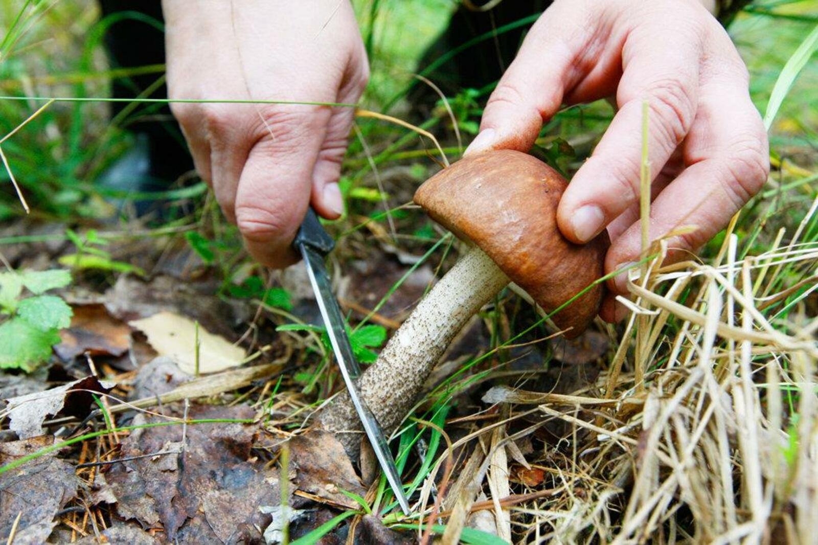 Человек срезает гриб