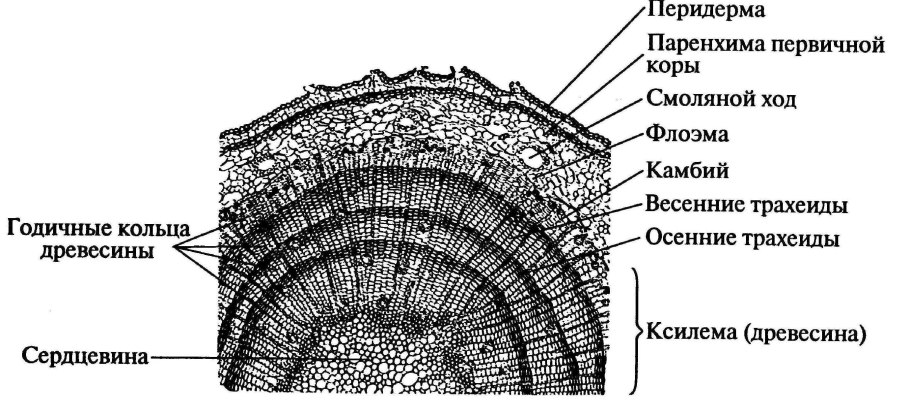 Строение ствола голосеменных