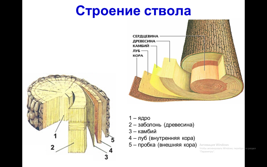 Анатомическое строение стебля древесных растений